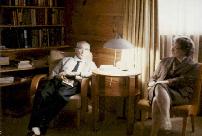 KATE & SAM, 1971. Katherine Ardis Ux talks with her father, Samuel George Ardis, in the living room of her home at Mt. Pleasant, Michigan USA. This is probably around 1971, with Samuel age 90 and Katherine around age 62. Samuel Ardis died in 1973, at age 92. Photo from the Tom Ardis Collection... probably taken by Katherine's husband, Hilton Ux, or possibly by her brother, Bernard Ardis, of Ionia, Michigan USA.